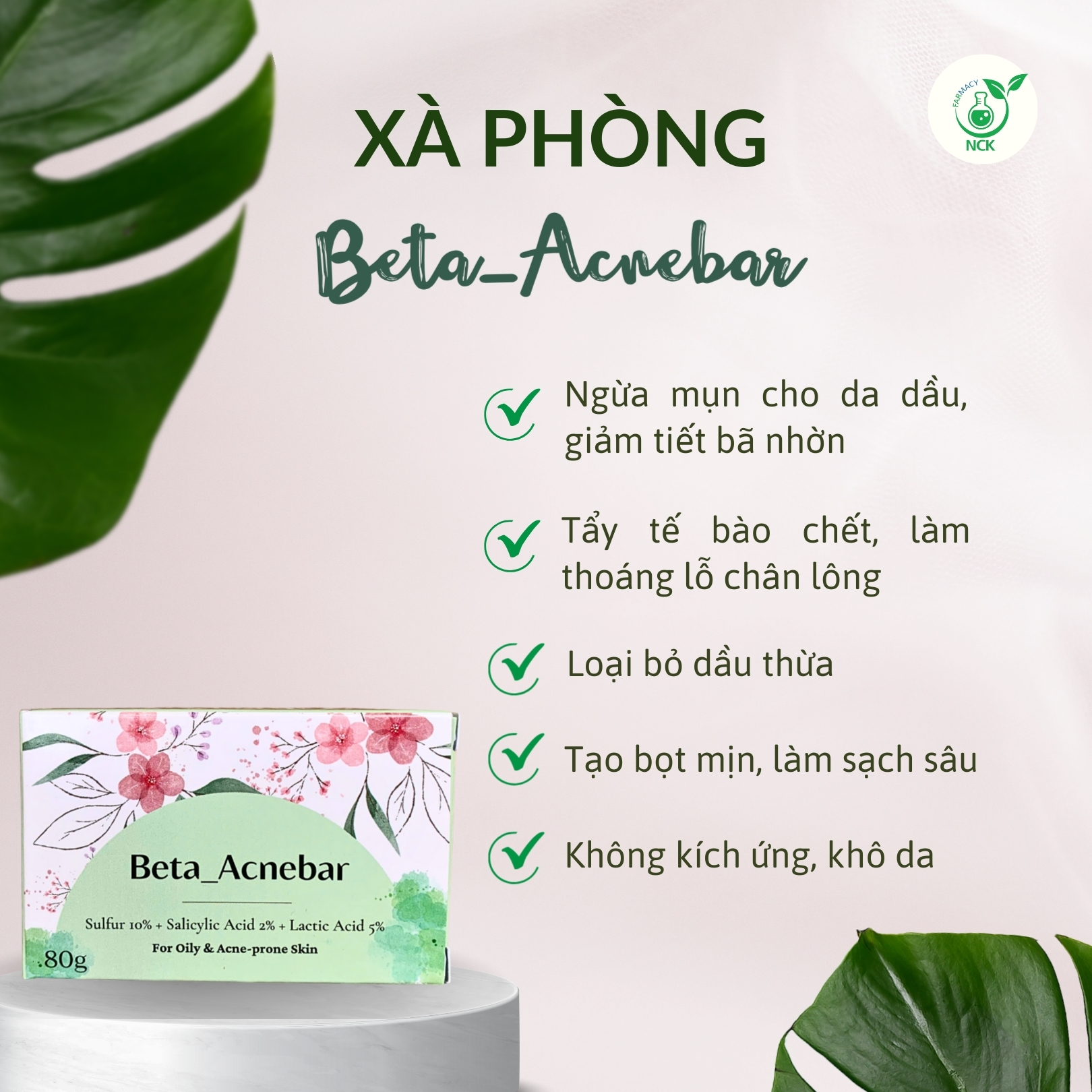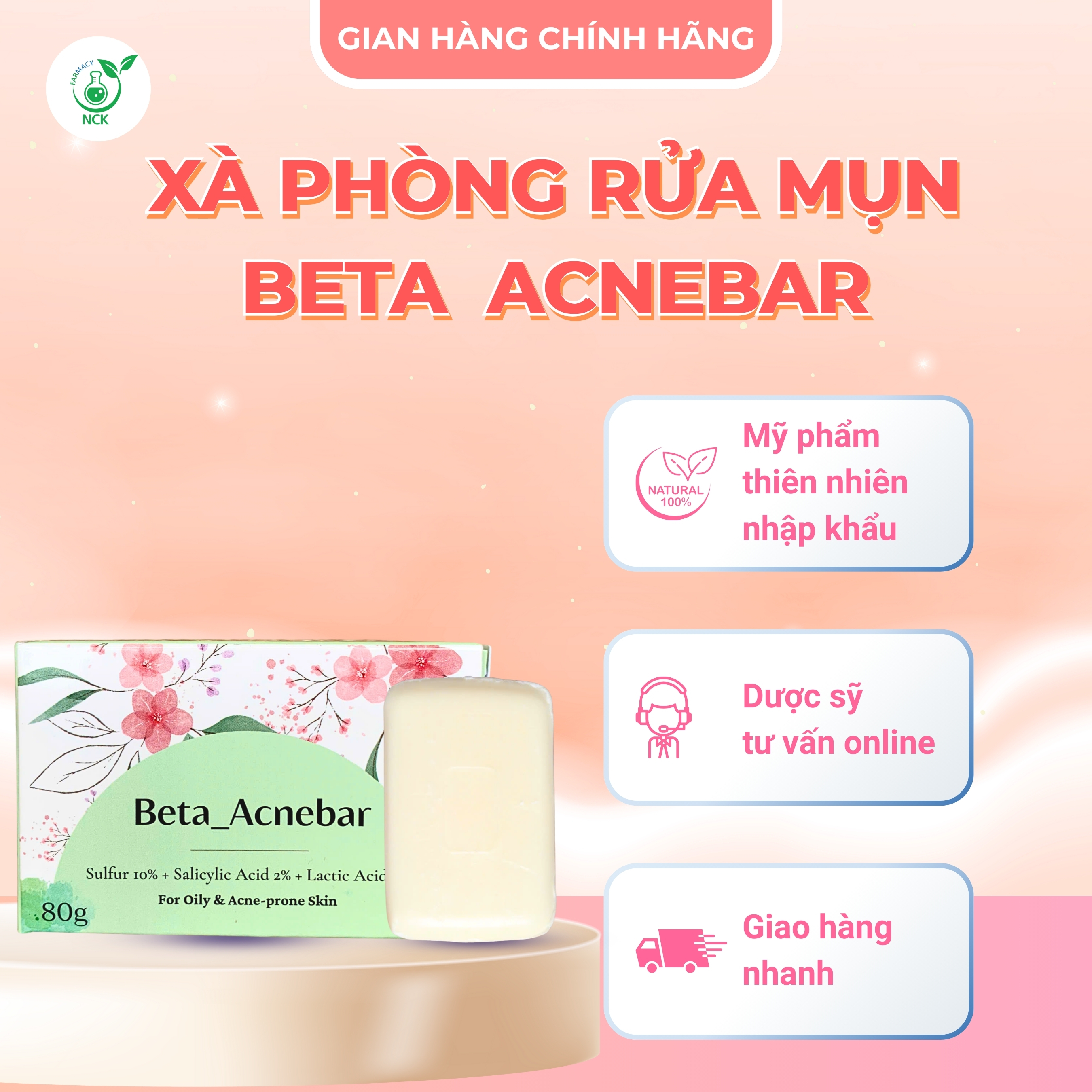 Tên sản phẩm: BETA ACNEBAR - Xà phòng tắm gội thiên nhiên ngừa mụn, giúp da mềm mịn