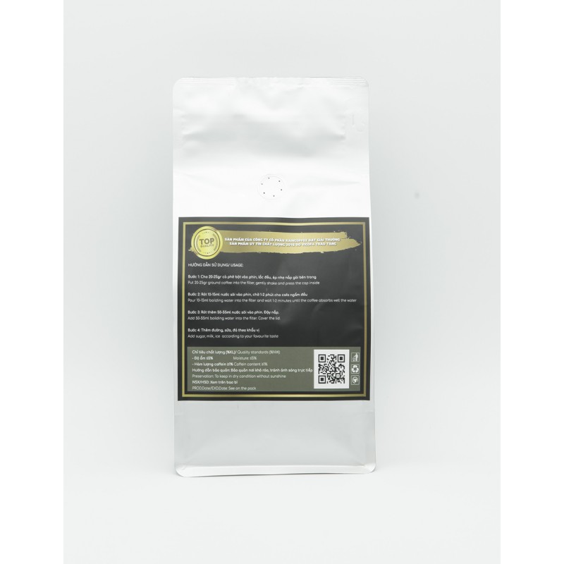 Tuyển chọn từ các loại hạt Cà phê đặc biệt; hái chín và nhặt tay; công nghệ rang đôc đáo, ngưỡng rang chuẩn cho Gu Cà phê pha máy chuyên nghiệp.