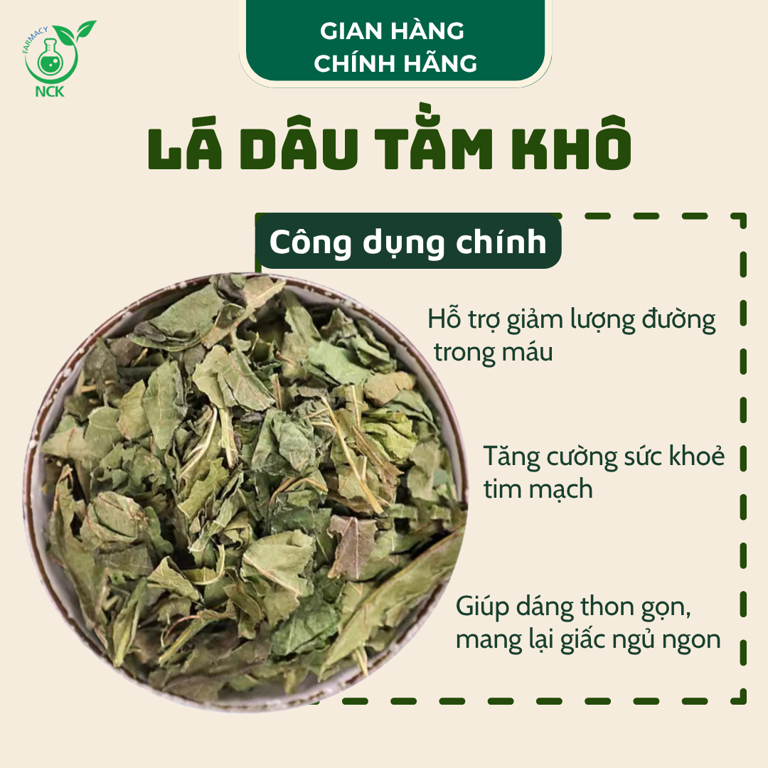 Lá dâu tằm khô sấy lạnh, sạch chuẩn Organic của NCK FARMACY là một loại thảo dược quý khai thác từ những cây dâu tằm ta trên 10 năm tuổi, được dùng lâu đời trong Đông Y để: BỒI BỔ - GIẢI ĐỘC - MÁT GAN PHỔI - NGỦ NGON - THANH LỌC CƠ THỂ TỰ NHIÊN